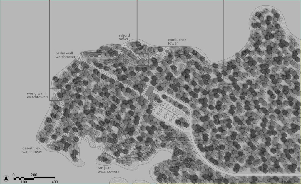 In the summer of 2014, myself and another SIU faculty member, Professor Stewart Wessel, initiated a new design problem in ARC550 Regional Design Studio. This semester-long investigation asked this class of graduate students to design an open-air museum hosting a principle exhibition of a collection of buildings. The first half of the semester was devoted to researching the collection, which each student developed independently. The collection of five to seven buildings had to be organized around a central theme and the students were encouraged to select buildings that were relatively small in scale to allow for better site management later in the semester. The collections were quite varied, from watchtowers and treehouses to concrete homes and geodesic domes to buildings that were assembled with no mechanical fasteners.